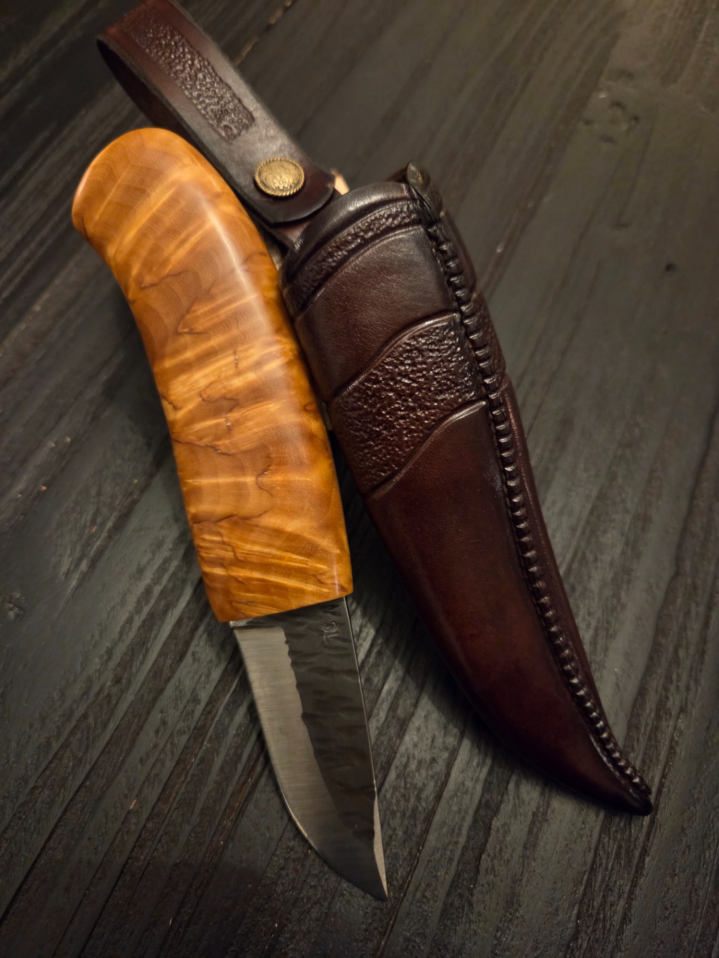 2018 Blad av Maihkel Eklund med skaft av tvärsågad masurbjörk.