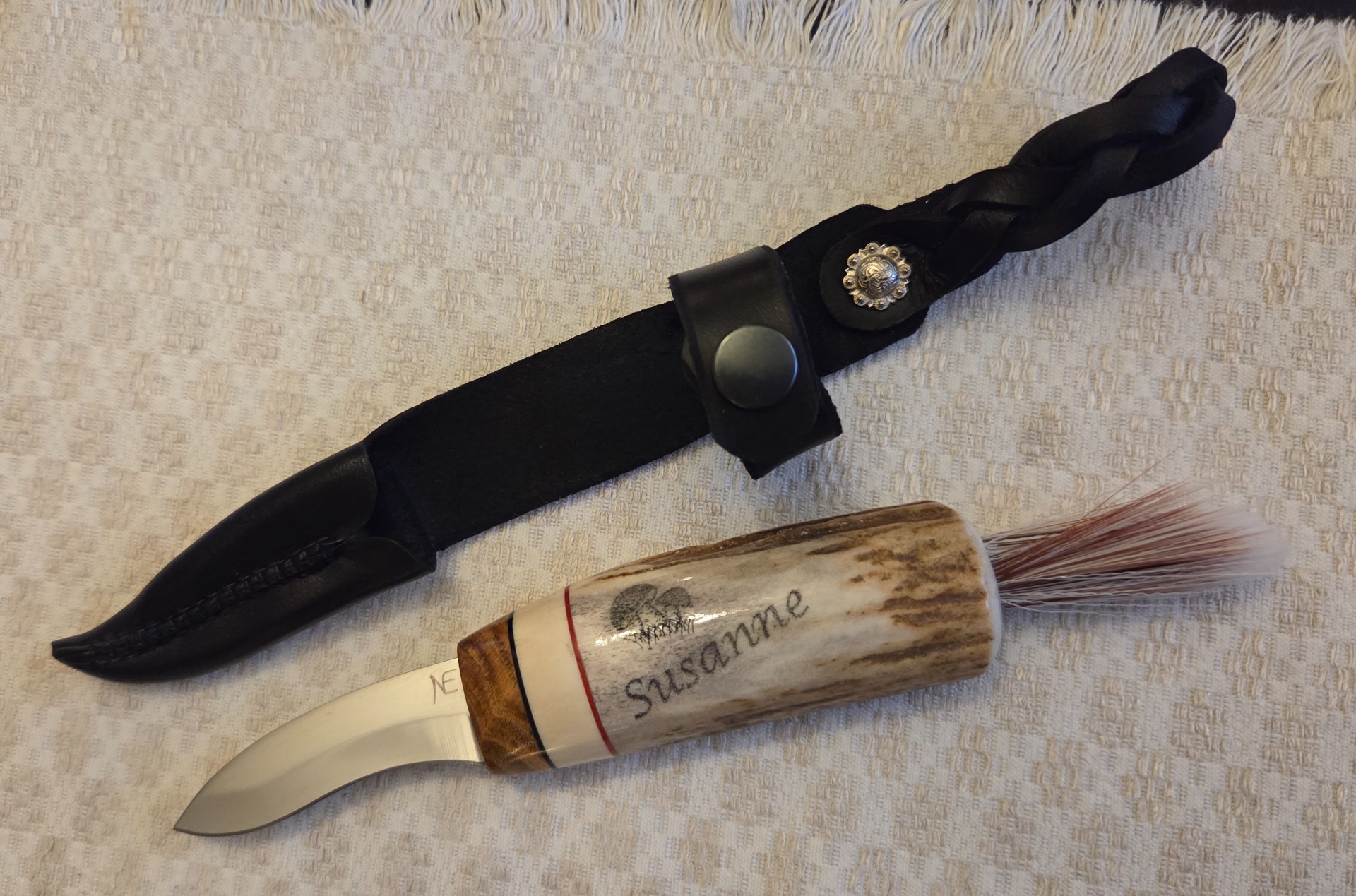 De har alla rostfritt blad, medan materialet i skaftet varierar, likaså utseendet på knivslidan. Skaften i älg- eller renhorn har ibland små svampar gjorda i scrimshaw (nålspetsgravyr).
